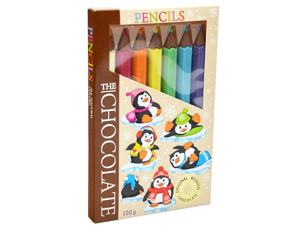Pastelky vyrobené z belgické mléčné čokolády s barevným dekorem. Pro mlsné jazýčky. Vhodné i jako dárek.