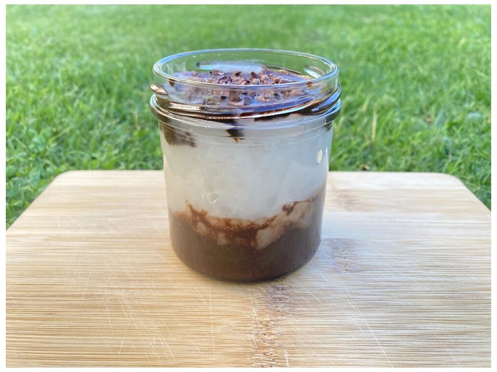 Každá lžička tohoto dezertu potěší svou hebkou strukturou a výraznou vůní čokolády, která se dokonale snoubí s lehkostí rostlinných ingrediencí.