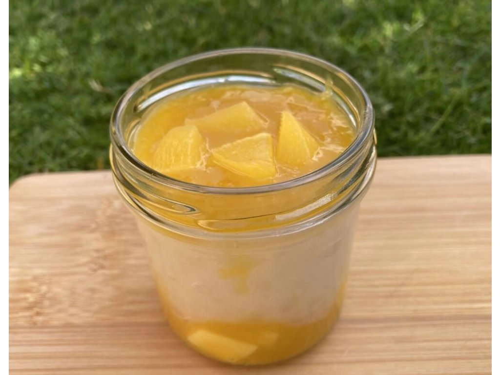 Tento sterilovaný dezert je přirozeně bez lepku, bez laktózy a vhodný i pro vegany. Ideální jako sladká tečka po jídle nebo lehké potěšení kdykoli během dne.